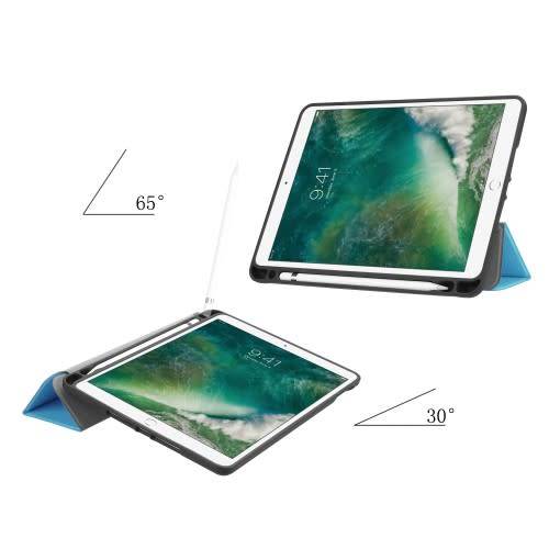 iPad 2017 / 2018 Tri Fold Smart Cover With Pencil Slot - Light Blue