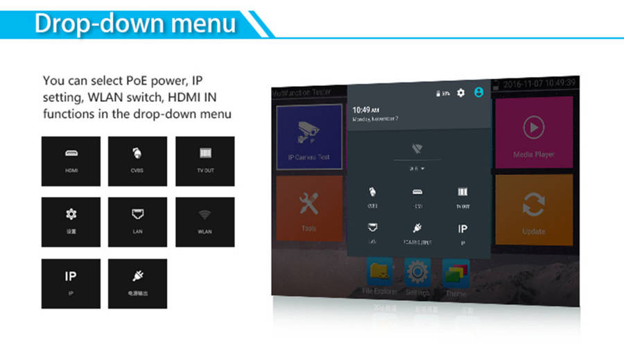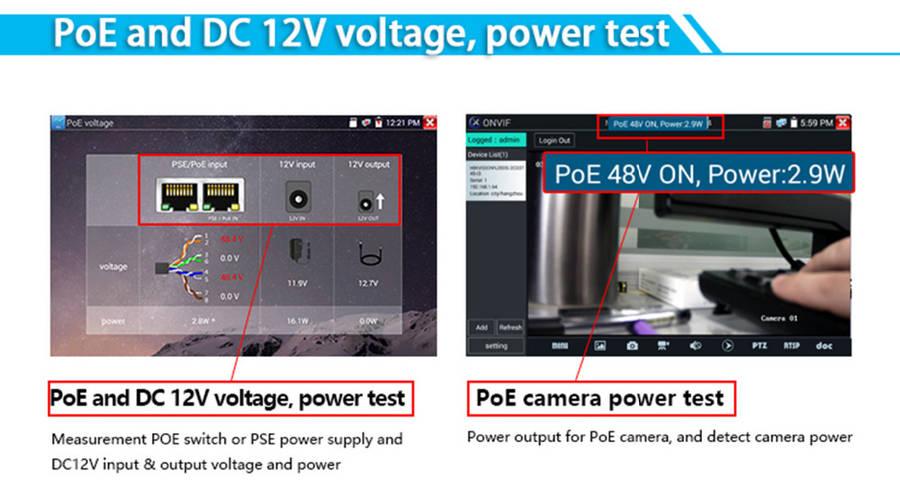 | Product | IPC9800Plus+ 7 Inch IP CCTV Tester Monitor Analog CVBS Camera Tester H.265 4K Video Testing Support ONVIF WIFI POE 12V Output |