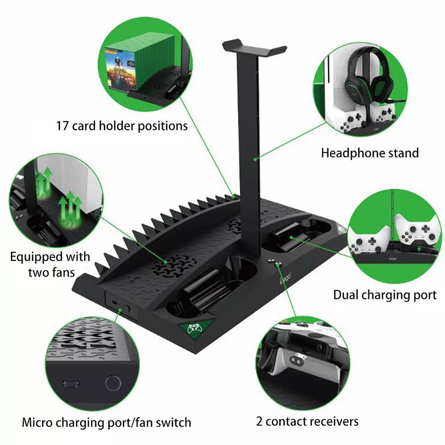 Dual fans can cool the host. Keep the game console cool, 2 built-in fans, higher speed, dissipate the heat from the console to keep it cool, and equipped with an independent fan switch button, the product is safer to use.