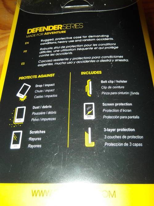 The Defender Series provides superior protection for a smartphone allowing complete interaction through the case. Screen Protection: Built-in screen protector.Inner Layer: Hi-impact polycarbonate shell. Outer Layer: Durable silicone skin. Access to sync/charge port via silicone plugs. Access to all side button features.Included belt clip holster doubles as a media viewing stand.