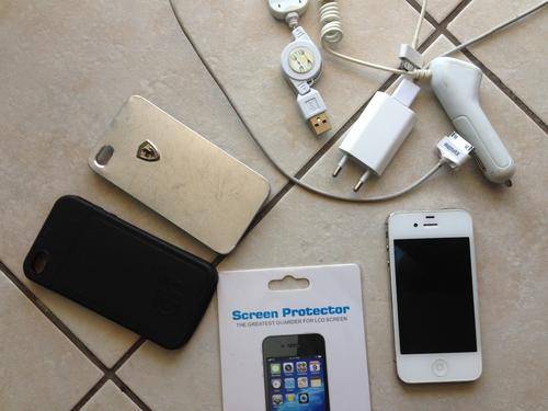 Bundle includes IPhone 4s, Genuine adapter, 2x Generic Charging/data cable (one cables tip is cello taped, still works fine) plus car charger. Ferrari michael Schumacher signed cover and Body glove cover. Brand new screen protector, not on the phone also included.