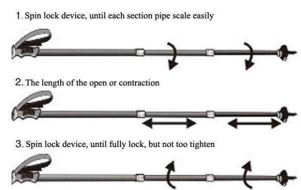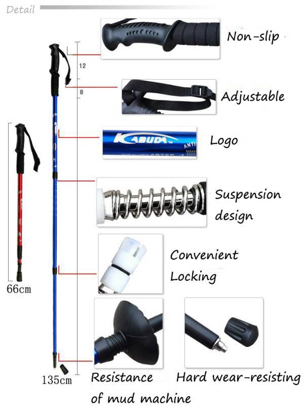 Ultra-light Handle 3-section Adjustable Canes Walking Hiking Sticks Trekking Pole CompassSpecification:Material: Aviation aluminum alloy rod, manganese steel tip