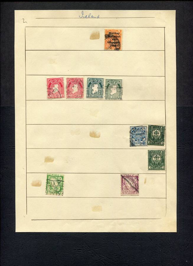 Ireland - 10 Stamps Mounted (Hinged) on Old Album Page