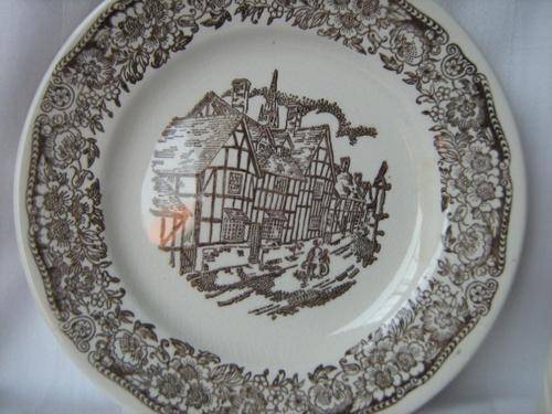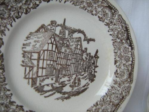 IRONSTONE BROADHURST STAFFORDSHIRE ENGLAND TUDOR VILLAGE SIDE PLATES (X6)