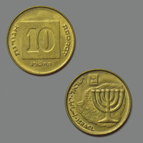 Israel 10 agorot Coin - Replica of a coin issued by Mattathias Antigonus (37 - 40 B.C.E.) with the seven-branched candelabrum - Aluminium-Bronze