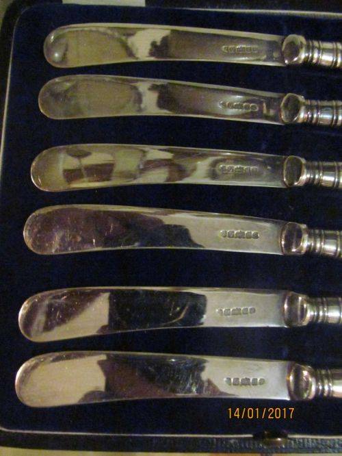 EACH individual butter knife is stamped/Hallmarked on the blade with the ISRAEL GREENBERG Hallmark. The Israel Greenberg & Co came into being in 1909 with Israel Greenberg being the Sole director. He passed away on 18th Oct 1926.