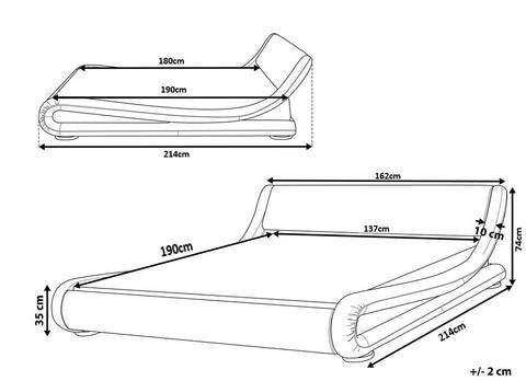The Italia Designer Bed adorned in faux leather and with a unique low-profile frame, is both sumptuous and contemporary designed. Sleek, curvaceous lines and soft-to-the-touch upholstery add drama and comfort to your bedroom. Short, silver legs complete this unique looking bed that givens a modernist impressionist view to the tone and style of the bedroom.
