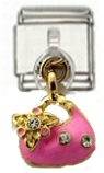 Italian Charms - Fits All 9mm Modular Bracelets - DANGLE - PINK HANDBAG