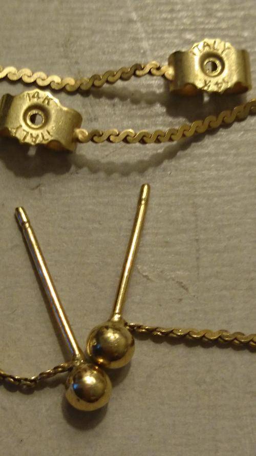 Italy 14k Gold Stud Earrings with Chain