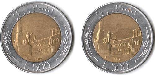 Italy 500 Lire 1982(x2) *rare* - only 162,000 minted - as per scan