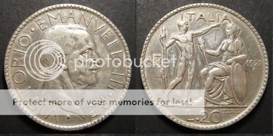 Italy : SCARCE : 20 Lire of 1928 : Extremely Fine Details (Cleaned)