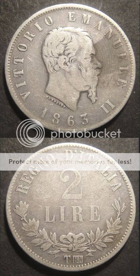 Italy : SILVER 2-LIRE 1863T BN (the scarce issue) NOT 1863N BN