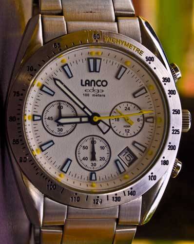 This watch has a stop watch function and the yellow hands look absolutely stunning