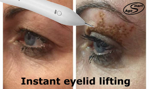 Instant plasma eyelid lift, scars, warts, spots, acne, eye bags, wrinkles removal.