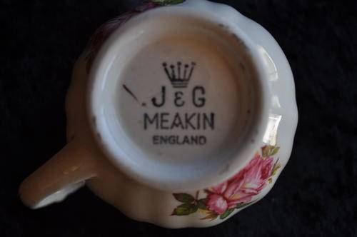 Here is a complete coffee set by J G Meakin from the late 1950's or early 1960's in perfect condition, consisting 6 duo's milk, sugar and a really special coffee pot.
