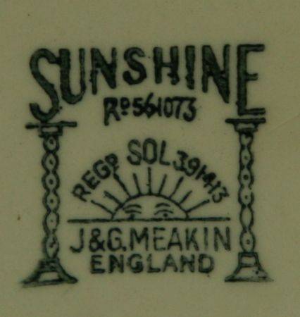 | Markings | Sunshine rd 5610173 regd sol 391413 j&G meakin england |