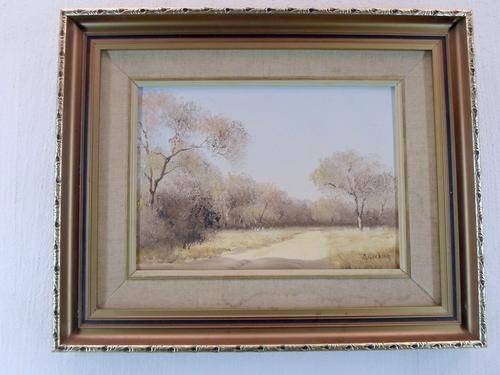A stunning painting by a very talented artist. This landscape of a dirt road through the trees is simply outstanding! The painting measures 34cm x 24cm and the frame measures 54cm x 43cm. At this price it is a steal, bid now!!