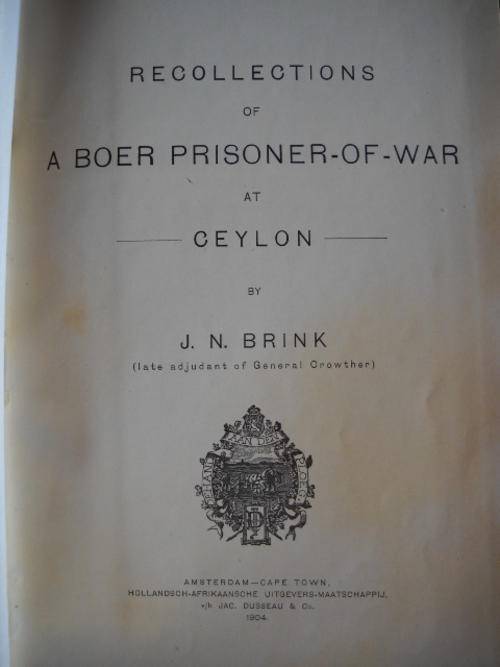 J. N. BRINK RECOLLECTIONS OF A BOER PRISONER-OF-WAR AT CEYLON First published 1904 Anglo Boer War