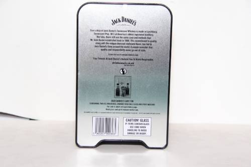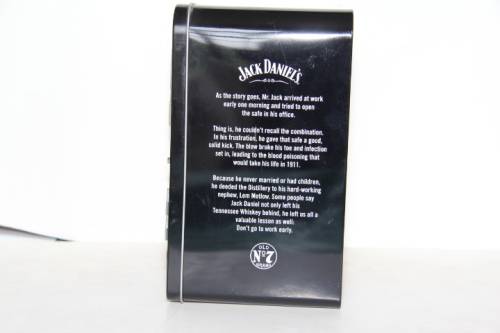 Jack Daniels Mini Tin safe(13.5cm width x 12cm depth x 22cm height).Tin is empty.