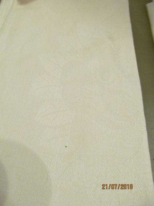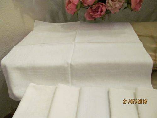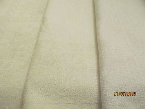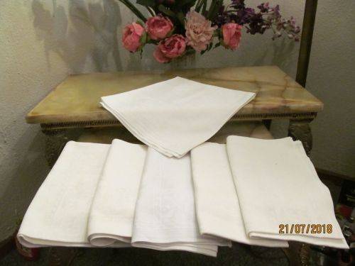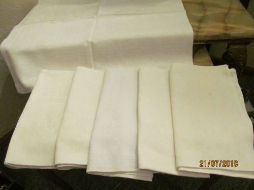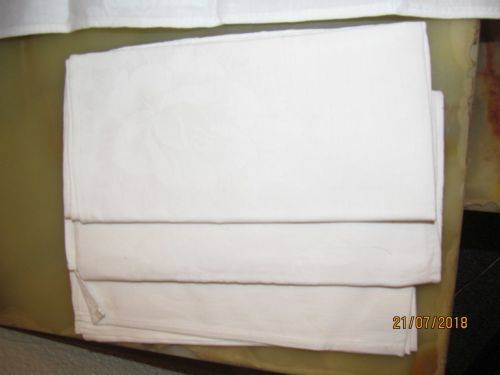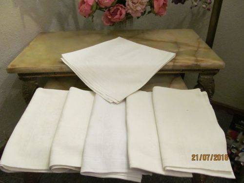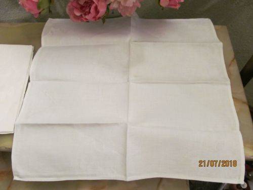 TWO SETS CONSISTING OF 10 VINTAGE LINEN TEXTILE TABLE SERVIETTES ALL BEAUTIFULLY MANUFACTURED WITH FINE WHITE JACQUARD PATTERNING. THE JACQUARD PATTERNING IS EXECUTED IN EXTREMELY FINE MACHINE EMBROIDERED WORK AND ALTHOUGH I ATTEMPTED IN VARIOUS LIGHT SETTINGS, I WAS UNABLE TO CAPTURE THE PATTERNING IN ANY SUITABLE MANNER ON THE PICS.