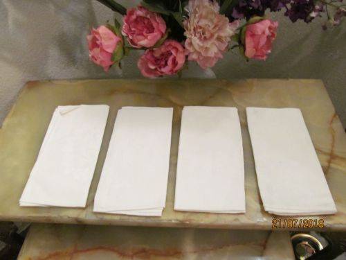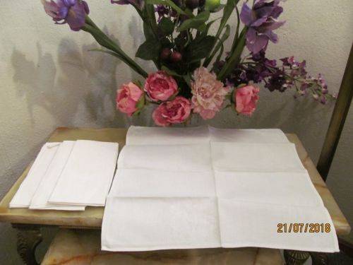 1)- FOUR (4) IDENTICAL STARCHED SERVIETTES WITH A FLORAL AND LEAF PATTERN ALONG ONE SIDE OF EACH ITEM. EACH IS 42.5cm by 42.5cm . ALL FOUR ARE IN IMMACULATE PERFECT CONDITION (AS NEW)