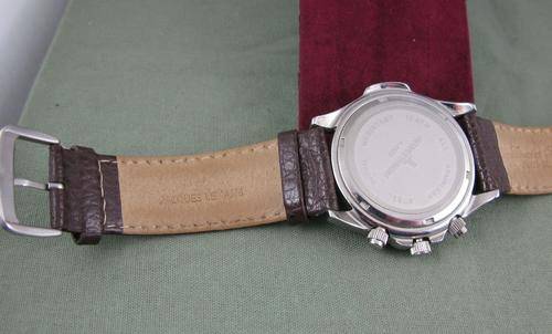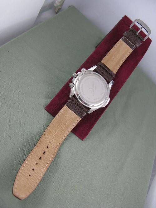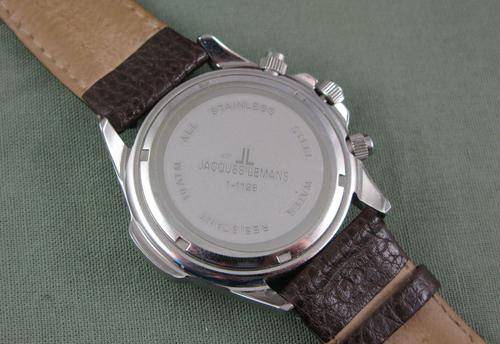 Original Jacques Lemans Men's Chronograph Watch, quartz movement in solid stainless steel case, water resistant 10 ATM, original genuine leather strap, in very good running condition, no scratches. Size: 46 x 46 mm. Diameter of the glass 32 mm. 3 month movement warranty. Free Courier Delivery & Insurance.