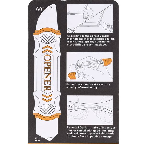 1. This tough tool nimbly opens modern small electronic casings 2. Springy steel blade features a smart tip design and a handle with a great no-slip grip 3. Be sure to exercise caution when using this tool. Its great strength comes the potential to scratch 4. Professional Tools for Replacing Batteries, Touchscreen, LCD, Cover, Hard Disk etc.