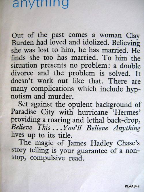 JAMES HADLEY CHASE : BELIEVE THIS...YOU'LL BELIEVE ANYTHING : HARDCOVER
