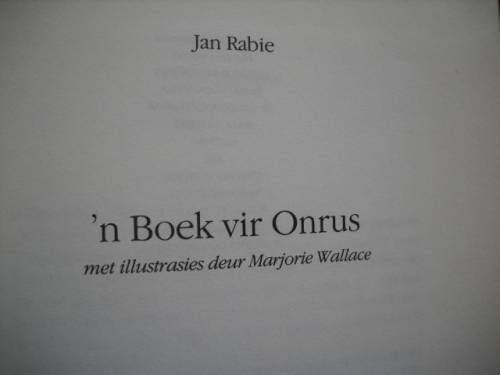 JAN RABIE 'n Boek vir Onrus Eerste uitgawe 1982 Illustrasies Marjorie Wallace