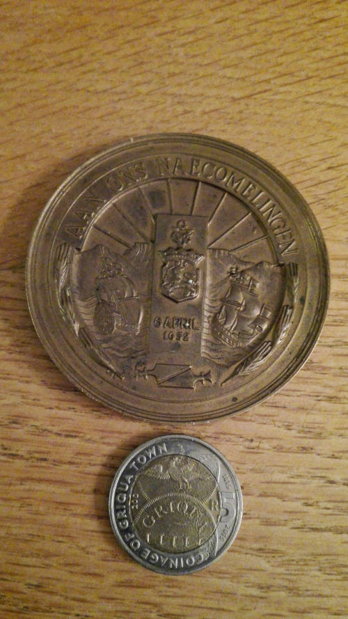 THE MEDALLION IS A  LARGE JAN VAN RIEBEECK, 1652 VOC BRONZE ITEM.