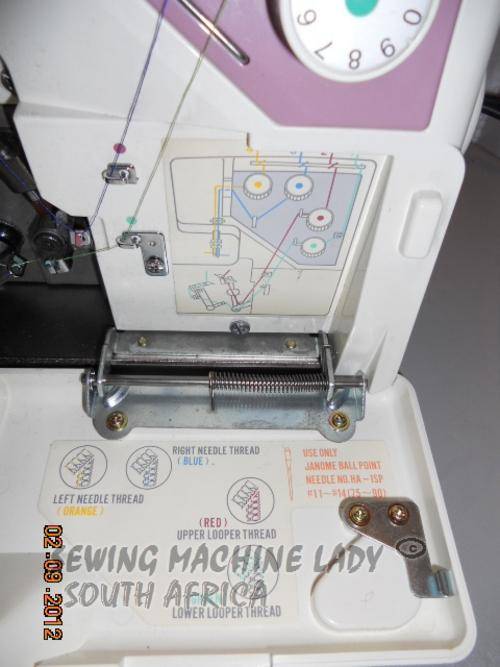 COLOUR CODED THREADING DIAGRAM AND STITCH DIAGRAM PRINTED INSIDE MACHINE