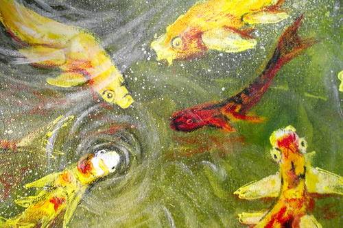 I was reminded about this desire when I moved to Barrydale recently and one of the local coffee shops has a massive pond where you can feed the fish. I've also avoided it because painting 'water' can be tricky but I am happy with the result.