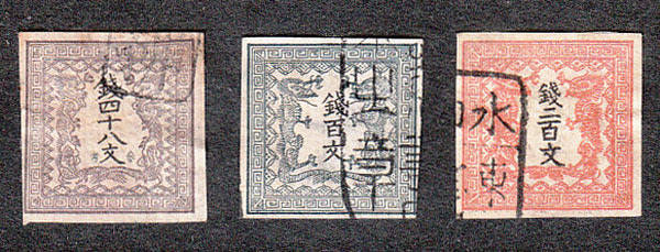 Japan 1871 Imoerfs three values used withmainly clear to large margins, no hidden defects (SG 2011 World Stamp Catalogue 1-3 cat value £1000) As I am not familiar with these stamps they are sold as per description and scans. Condition as per scan(s) which form part of the description.