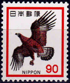 JAPAN, 1973. Definitive issue - Japanese Stone Eagle. WM: None Perf: 13 x 13½. Single issue, mint, not hinged. View scans for condition as it form part of the description, CV +/-R 27.00. Note, display card not included, and, the line across the images are due to the display card that we use to scan items.