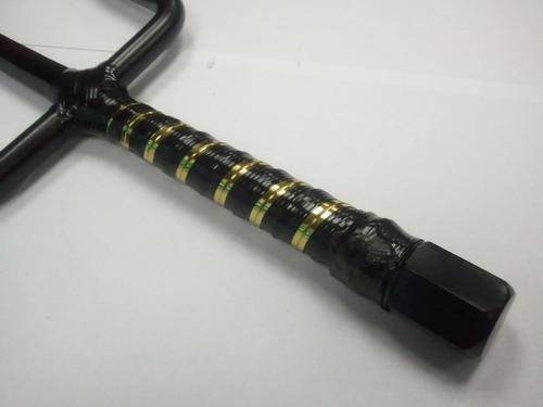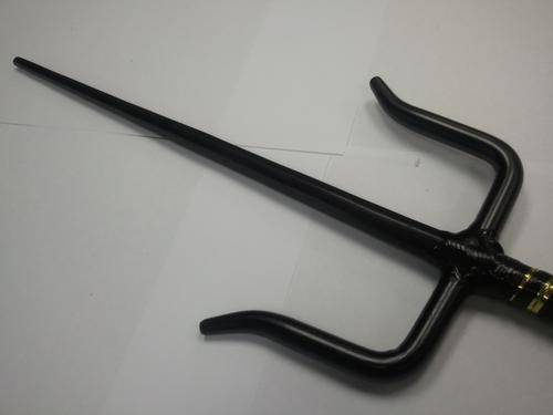 Made of forged steel with a chrome finish, excellent for competitions or for training. Leather wrapped handles provide excellent gripping and beautiful styling. The octagon sai have an eight sided blade and handle end. They are truly beautiful weapons (sold in pairs)