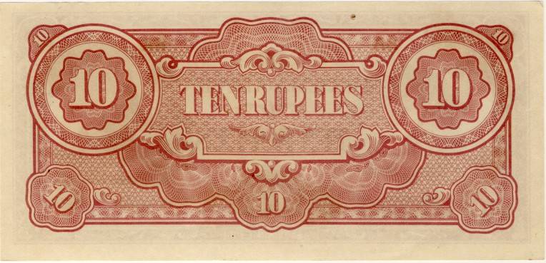 The Japanese invaded Burma in January 1942. They conquered Mandalay on 21 May 1942 forcing the British to retreat into India. The Japanese held Burma until the second Allied campaign of 1944; although an official surrender did not take place until August 1945. In 1942 the Japanese issued paper script currency of 1, 5 and 10 cents and ¼, ½, 1, 5 and 10 Rupees.