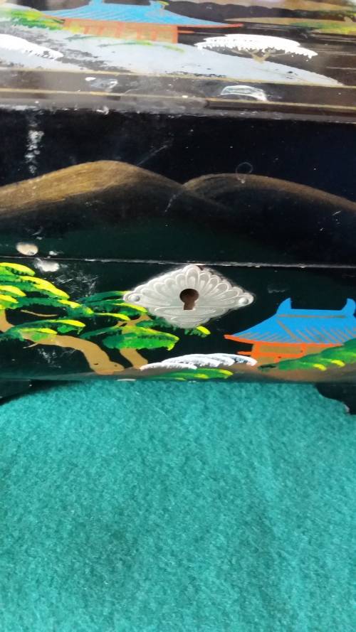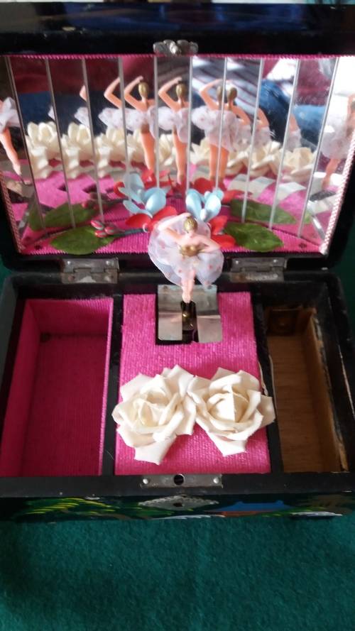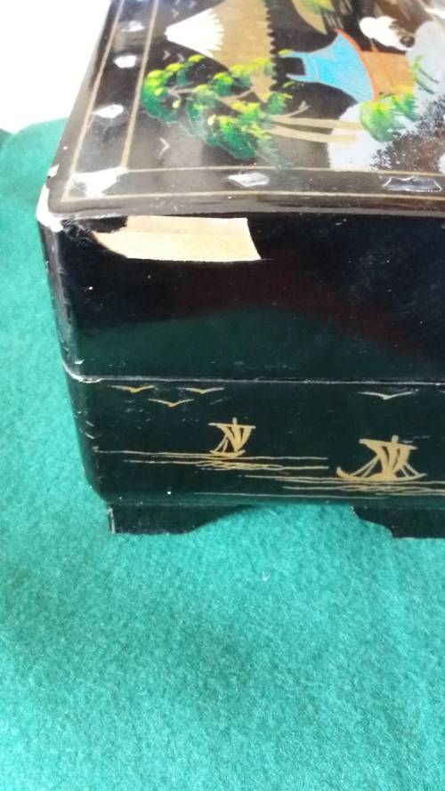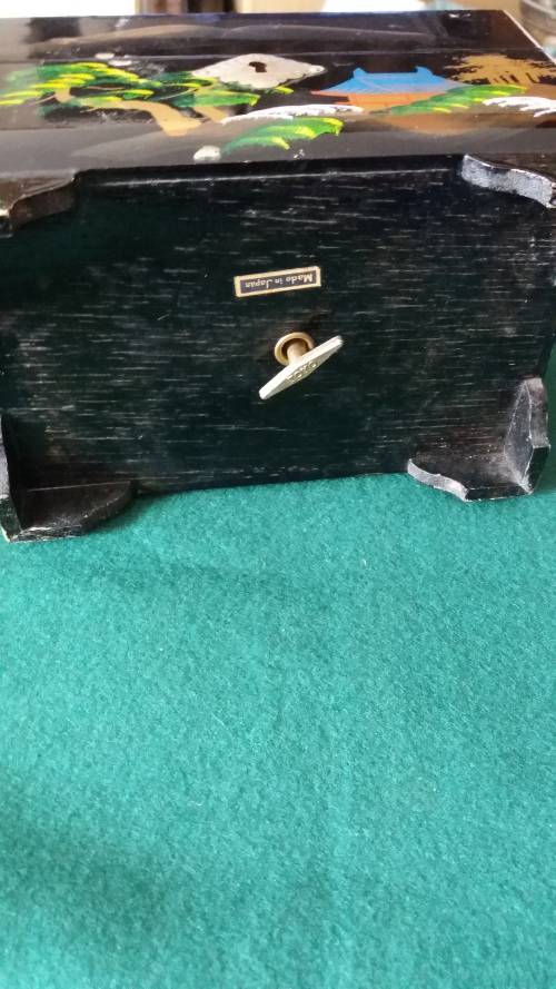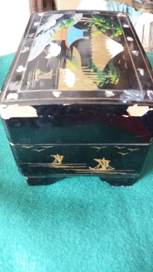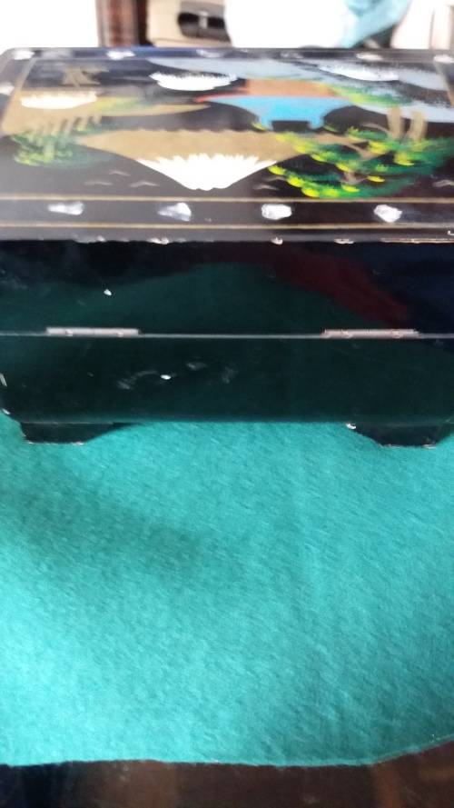 Here is a very nice musical box in fair condition and working movement plays "Lara's Theme". It's has MOP inlays on the lid. There are some paint chips on both sides of the lid and the pink cover on the right hand side is absent but overall it's still usable. It measures 18x12x11cm. Please look at the pictures as they form part of the description. Payment by Monday after close of auction. Thanks for looking