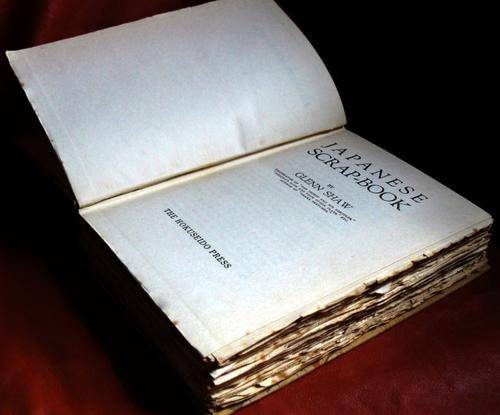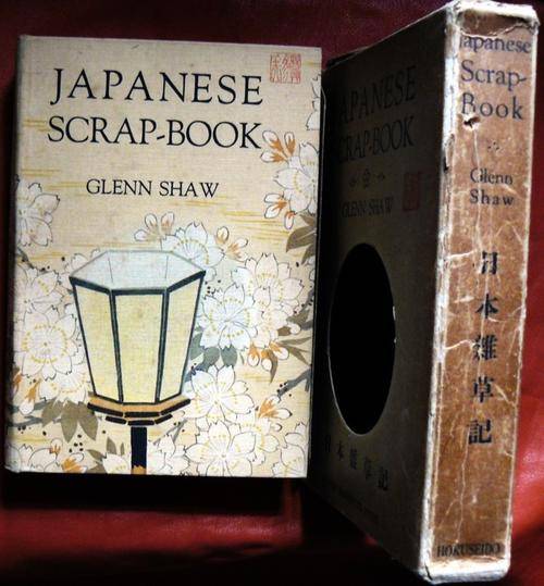 First Edition, The Hokuseido Press, 1932. Hard Cover, The book is bound in a lovely illustrated cream-yellow cloth binding, slightly soiled, Front board has a "Japanese" ink-stamp as does ffep, Book Block binding is a little shaky, page ends and tail are un-trimmed, some light foxing to outside edges of book block. Housed in a printed chipboard slipcase. Contains a Paper, which I assume to be a bookseller's invoice, as it is written in Japanese. The book is in good condition; the slipcover is intact, hinge of slip-cover is worn, and also has the Japanese ink-stamp. A compilation of writings by Glenn Shaw (a writer and teacher who lived in Japan for more than 40 years, from 1913 to 1957, with a brief break during the war) under the chapter headings of: Essayish, Storial, Traveloguish, Diarial, and Homiletical. A rather rare and collectible book.