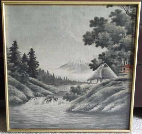 JAPANESE SILK PAINTING OF MOUNT FUJI