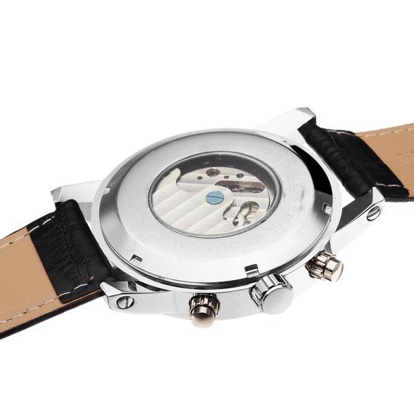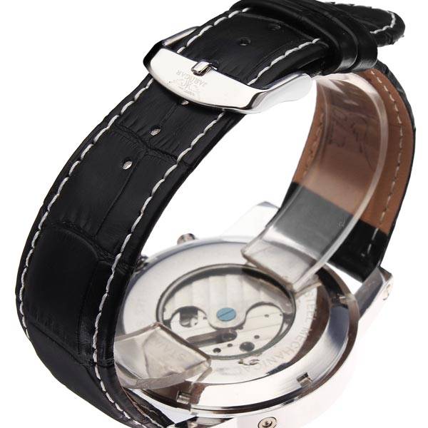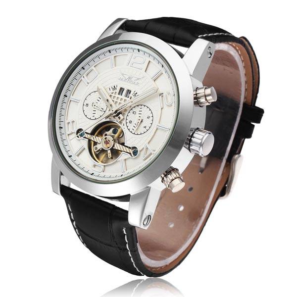 Jaragar Black Leather 3 Dial Flywheel Men Mechanical Wrist Watch