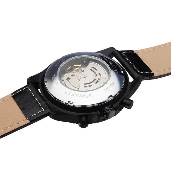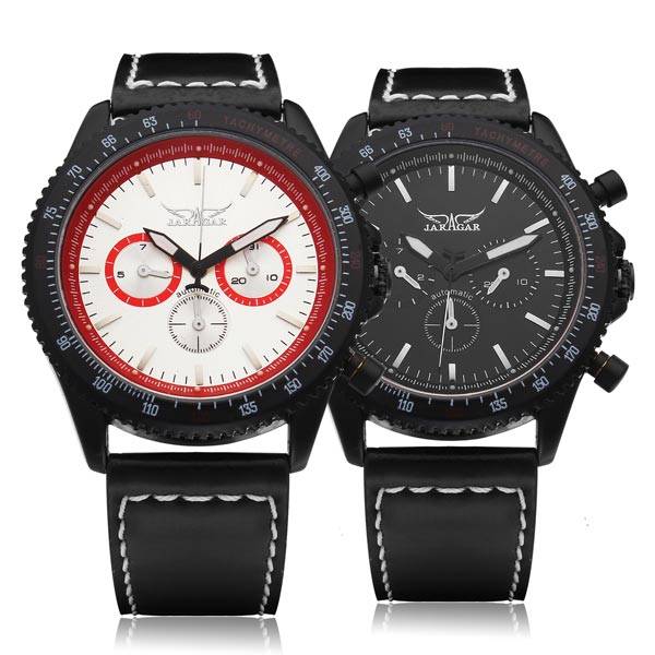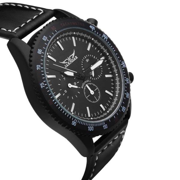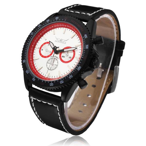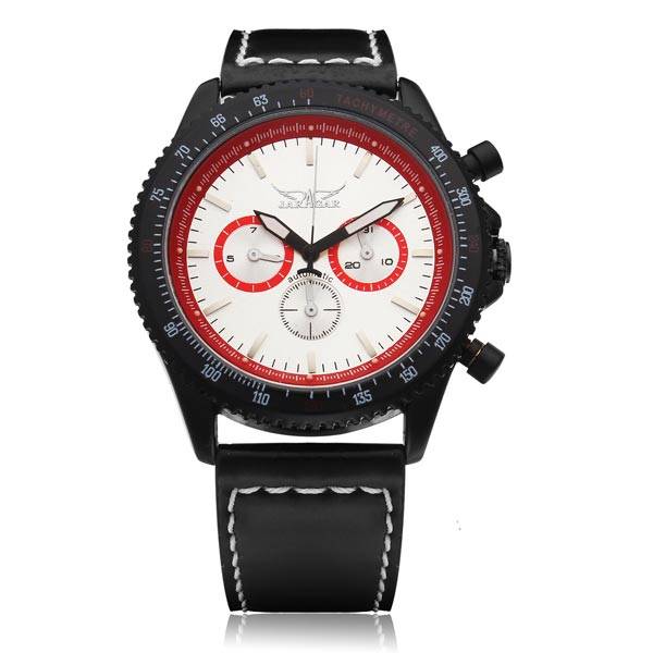 Jaragar Black Leather White 3 Dial Men Mechanical Wrist Watch