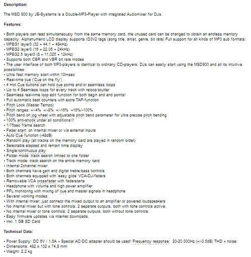 1 x JB Systems MSD900 Twin SD Card Player for sale. Last used New Years 2013. Still in mint condition. The unit comes with a half completed flight case. No chancers. Cash preferred, EFT's will also be accepted, but collection will only be allowed once the funds have cleared in my account. My health does not allow me to DJ any more and I would hate to see this wonderful kit go to waste.