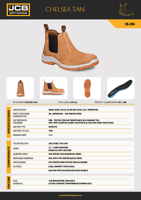 The JCB Chelsea Tan Safety Boot is a comfortable and stylish choice with an easy slip-on design, making it ideal for a variety of work environments.