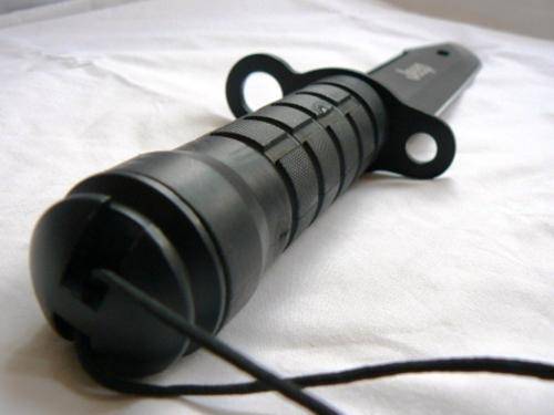 v Beautifully made measuring around 38cm in length , The blade measures around 25cm. Handle comes with a few items for survival including fish hook, line and matches and compass.