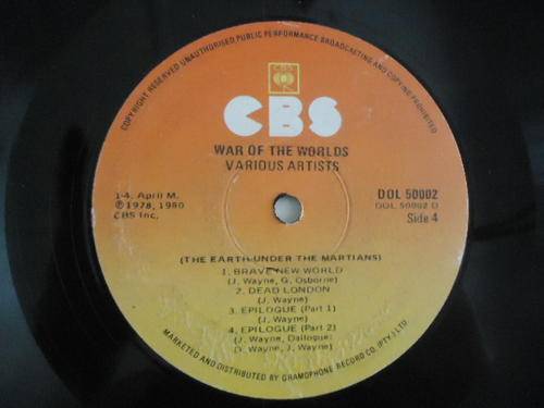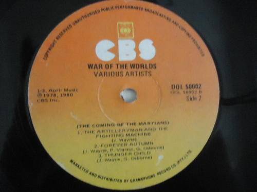 On offer is thisJEFF WAYNE'S "THE WAR OF THE WORLDS" -1980 CBS DBL STEREO DOUBLE GATEFOLD LP IN GOOD CONDITION WITHSLIGHT HAIRLINE SCRATCH MARKS ON EACH OF THE FOUR SIDES WITH VISIBLE RUB MARKS AND THE COLOUR GATEFOLD FRONT COVER IS IN V/GOOD CONDITION.