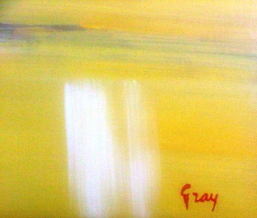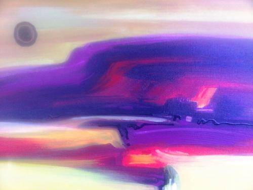 I brush, pour, spray, smear, scratch into, sponge on and lift off, mask and glaze the acrylic paint onto the prepared canvas, to create marks and shapes essential to visual imagery, to form curving, sweeping waves of colour. Back and forth with texture and paint, working 3 or 4 paintings at once, this is a process of putting on and taking off, playing around and waiting, until at last in my eyes I have a successful picture design.