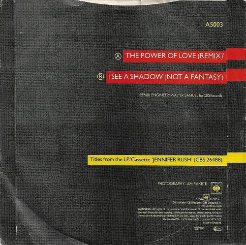 Jennifer Rush - The Power Of Love (Remix) 7` Vinyl Record - UK Pressing