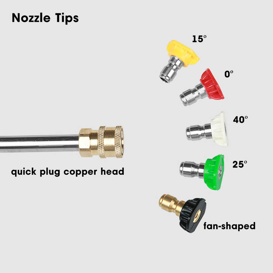 - 1/4 quick insert fan nozzle + 5 Nozzle Tips.