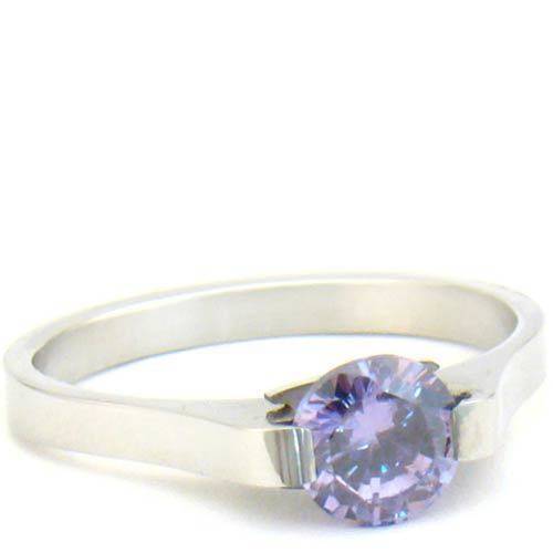 3- STAINLESS STEEL SOFT PURPLE STONE RING (17,18,21MM)