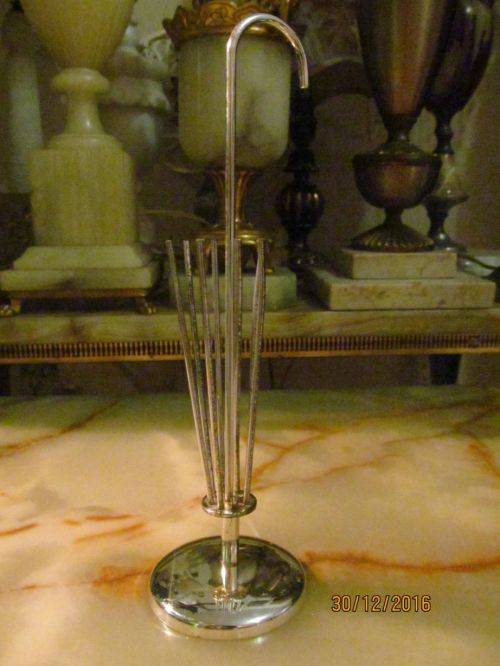 A Novel idea incorporated into Decorative and Ornamental purpose by giving it the appearance of an Umbrella, This Jewellery stand has its own attached circular base and 8 metal rods upon which jewellery can be placed. The handle of the item permits it to be moved around without compromising any of the items, be they earrings or rings, which have have been placed upon it